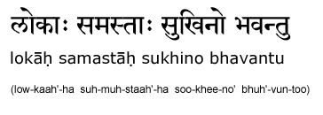 om lokasamastâh sukhino bhavatu: ist die rechte Schreibweise, leider kann ich Dir das nicht in devanâgarî senden, weil die
